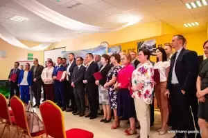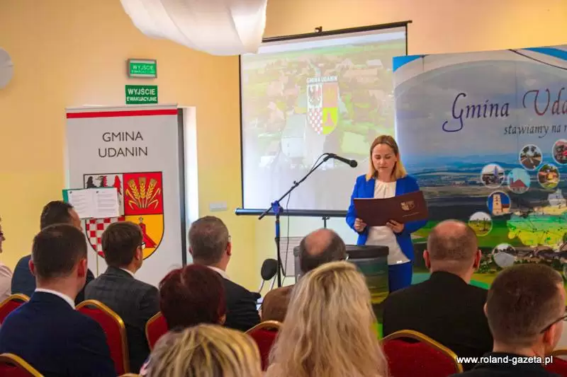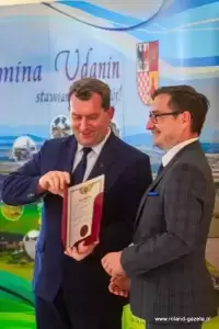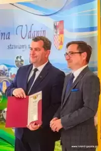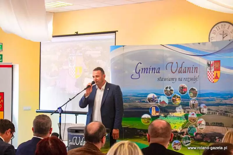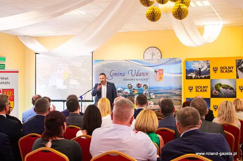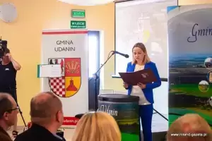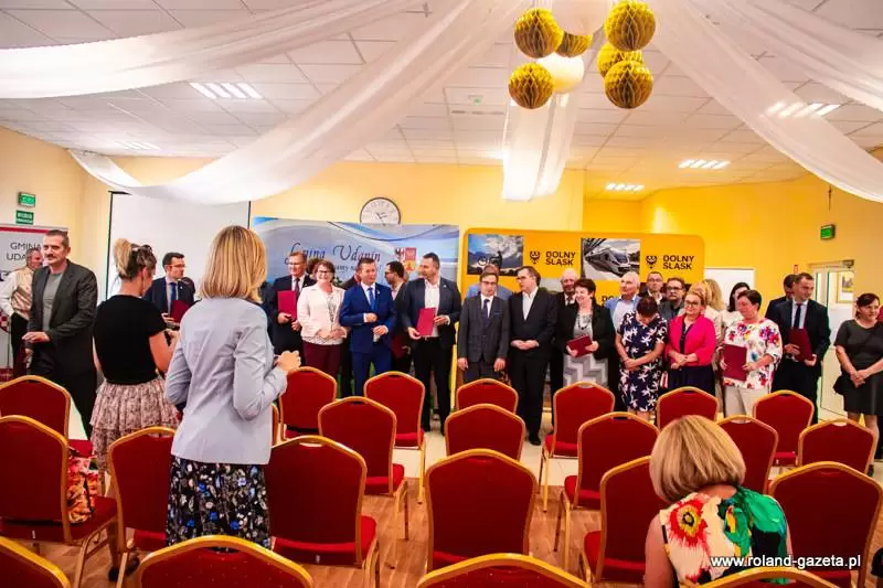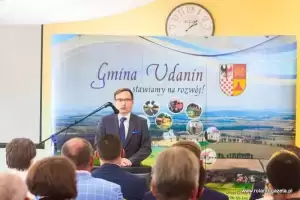 W uroczystości uczestniczyli: poseł Przemysław Czarnecki, wicemarszałek Województwa Dolnośląskiego Marcin Krzyżanowski, z-ca dyrektora Wydziału Obszarów Wiejskich Izabela Woronowicz, przedstawiciele gmin nominowanych do odbioru promes oraz radni i sołtysi z terenu gminy Udanin.