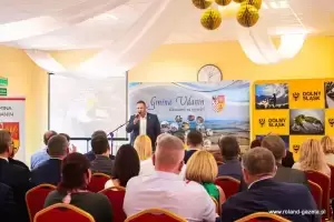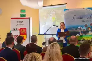 Gości powitał gospodarz spotkania, wójt Gminy Udanin Wojciech Płaziuk oraz Agnieszka Pichowicz, kierownik Referatu Pozyskiwania Środków Zewnętrznych, Promocji Gminy i Sportu.