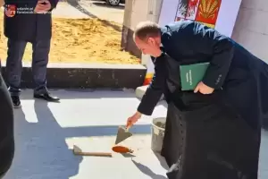 Po włożeniu do kapsuły pamiątek z dzisiejszej uroczystości, będących znakiem czasu dla przyszłych pokoleń, po zamknięciu aktu w przygotowanej kapsule i umieszczeniu go w symbolicznym kamieniu węgielnym, ksiądz Marek Jodko - proboszcz parafii pw. św. Jana Chrzciciela w Piekarach dokonał poświęcenia kamienia węgielnego.