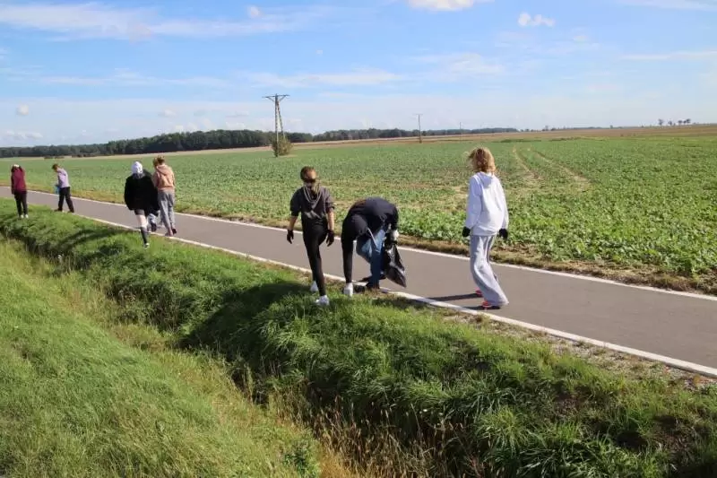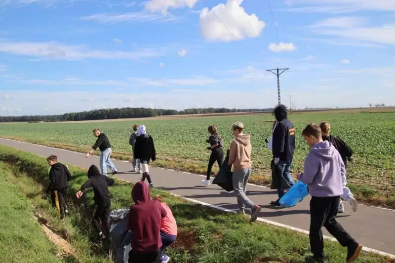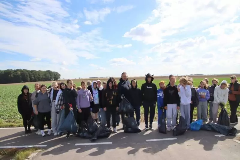 Społeczność szkolna, wraz z wójtem, aktywnie uczestniczyła w sprzątaniu ścieżki rowerowej przy drodze do Michałowa. Dzięki wspólnej pracy udało się zebrać wiele odpadów, dbając o czystość i piękno naszej gminy.