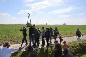 Wójt Gminy Udanin z uczniami podczas Dnia Ziemniaka i Sprzątania Świata