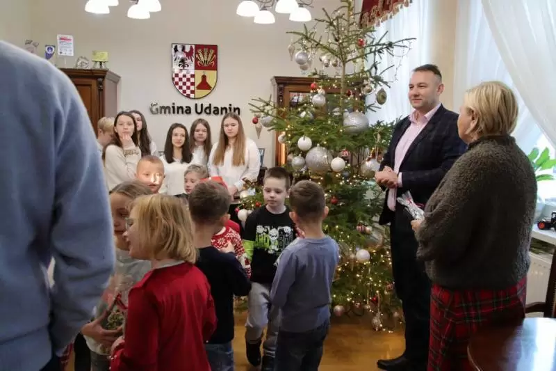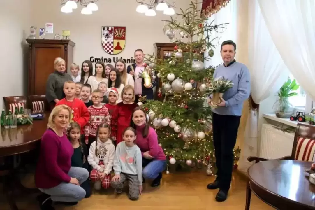 Coroczną tradycją stało się wspólne ubieranie choinki w gabinecie wójta Gminy Udanin Wojciecha Płaziuka.