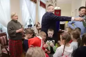 Na zakończenie wizyty dzieci wręczyły wójtowi oraz sekretarzowi gminy piękne stroiki, a w ramach wdzięczności wójt przekazał słodkości oraz gadżety gminne dla uczniów.