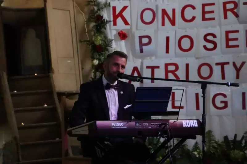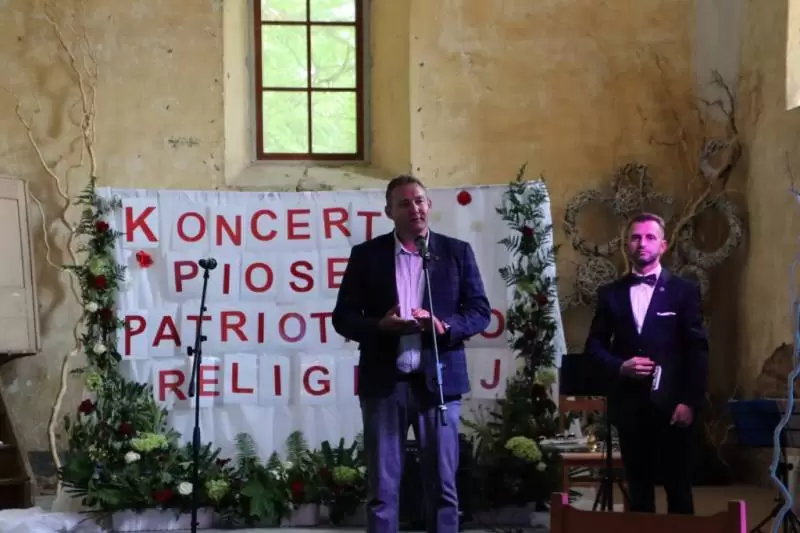 Otwarcia XV Koncertu Piosenki Patriotyczno - Religijnej w Udaninie dokonał Wójt Gminy Udanin Wojciech Płaziuk, wspominając jak ważną rolę odrywa on w życiu lokalnej społeczności.