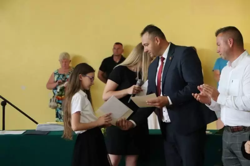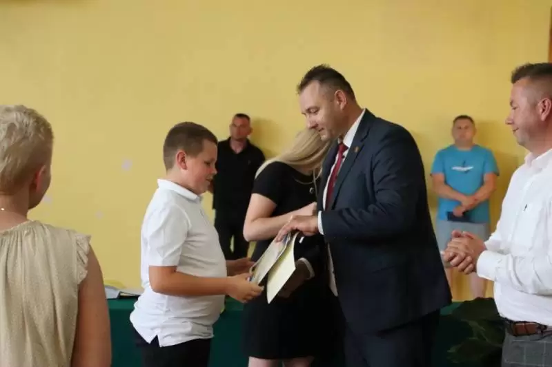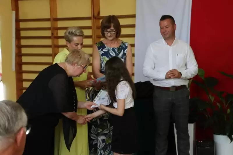 Również w tej szkole nie mogło zabraknąć wyróżnień wręczonych przez Włodarza Gminy. Dla najbardziej uzdolnionych dzieci i młodzieży zostały wręczone przez Wójta Gminy Udanin Wojciecha Płaziuka Dyplomy uznania oraz nagrody w formie bonu. Nagroda Wójta w tym roku została przyznana za uzyskanie średniej ocen powyżej 5,20. W zależności od wysokości średniej uczniowie otrzymali zróżnicowane wartością bony do sklepu Decathlon. Wójt Wojciech Płaziuk, wspólnie z przewodniczącym Rady Gminy Udanin Januszem Strzeleckim, wręczył 10 nagród. Najlepsi z najlepszych to: