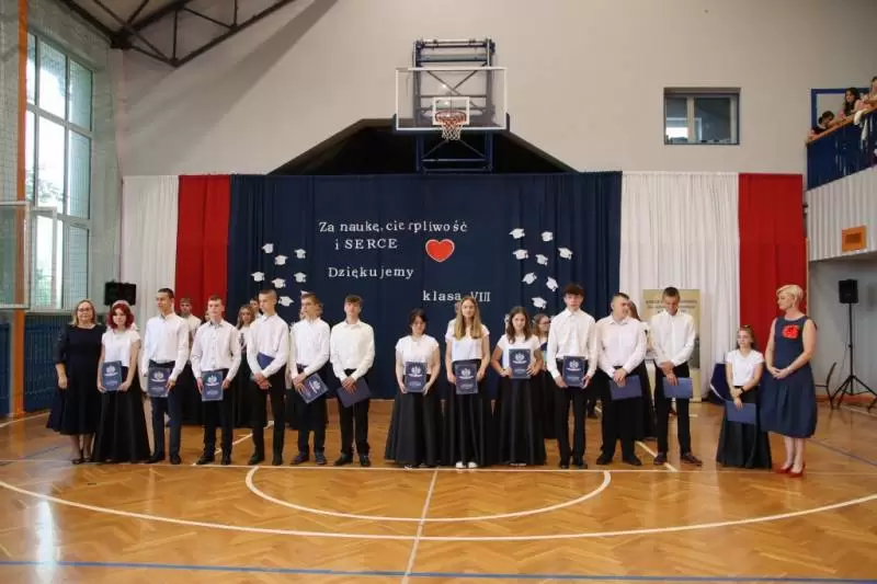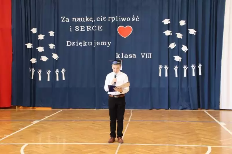 W akademii podsumowującej pracę i osiągnięcia uczniów wzięła udział społeczność szkolna, rodzice uczniów, nauczyciele i dyrekcja szkoły oraz zaproszeni goście m.in. Asystent Ministra Cyfryzacji Janusza Cieszyńskiego, Dolnośląski Wicekurator Oświaty Janusz Wrzal, Wójt Gminy Udanin Wojciech Płaziuk, Przewodniczący Rady Gminy Udanin Janusz Strzelecki oraz Ksiądz Proboszcz Marek Jodko. Po odśpiewaniu w obecności sztandaru szkoły hymnu narodowego, klasa VIII SP Udanin zatańczyła poloneza. Zaproszeni goście oraz uczniowie kl. VIII długie godziny trenowali pod czujnym okiem nauczyciela wychowania fizycznego Pana Rafała Szulińskiego.