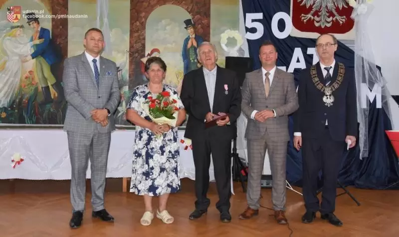 Wójt Gminy Udanin Wojciech Płaziuk 27 czerwca zaprosił małżonków obchodzących "złote" rocznice zawarcia małżeństwa, na uroczystość wręczenia medali za długoletnie pożycie małżeńskie nadanych przez Prezydenta Rzeczypospolitej Polskiej. Do świetlicy w Udaninie przybyło 10 par wraz ze swoimi rodzinami.