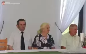 Wręczenie medali przez wójta Wojciecha Płaziuka rozpoczęto hymnem państwowym wykonanym przez Zespół „Cicha Woda” z Udanina. Przewodniczący Rady Gminy Janusz Strzelecki złożył Jubilatom życzenia oraz wręczył listy gratulacyjne, wzniósł toast za pomyślność i zdrowie małżonków, a przybyli goście zaśpiewali Jubilatom 100 lat. Z kolei zespół „Cicha Woda” zaprezentował swój program specjalnie przygotowany na tę okazję.