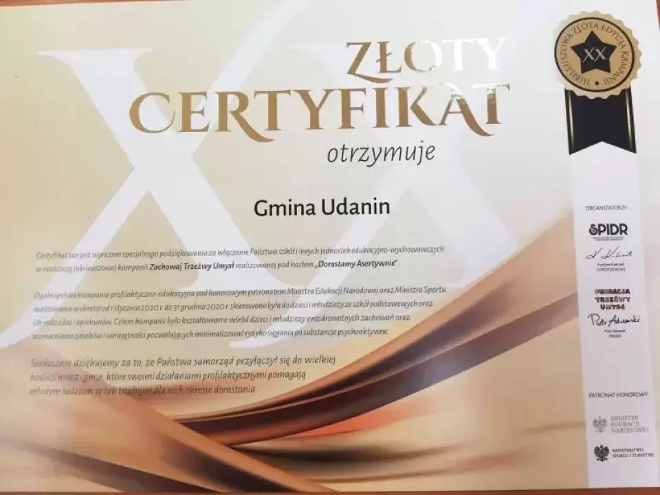 Szkoły i inne jednostki edukacyjno-wychowawcze z terenu gminy Udanin włączyły się w realizację jubileuszowej kampanii Zachowaj Trzeźwy Umysł realizowanej pod hasłem „Dorastamy Asertywnie”.
