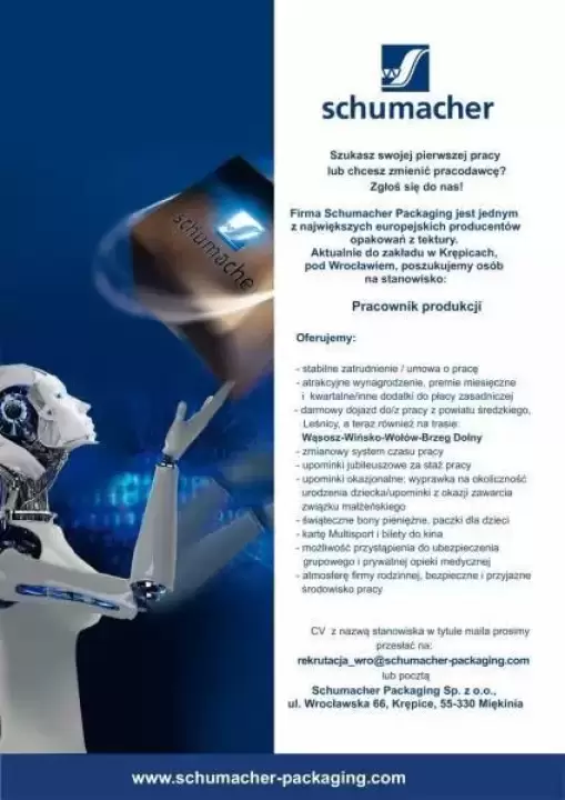 Aktualnie do zakładu w Krępicach, pod Wrocławiem, poszukujemy osób na stanowisko: Pracownik produkcji.