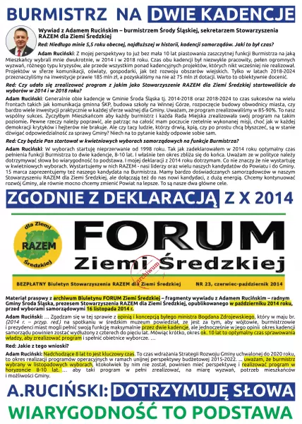 Więcej…Burmistrz na DWIE KADENCJE - ZGODNIE Z DEKLARACJĄ z 2014 r. Wywiad z Adamem Rucińskim