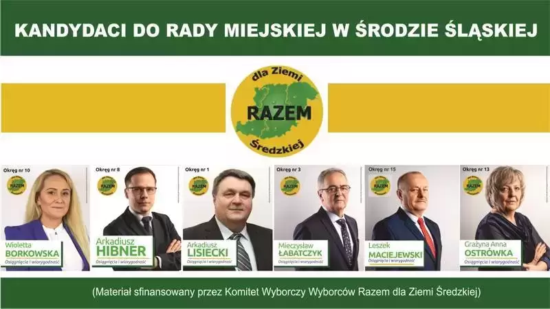 Komitet Wyborczy Wyborców Razem dla Ziemi Średzkiej przedstawia kandydatów do Rady Miejskiej w Środzie Śląskiej.