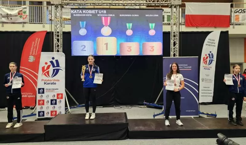 Indywidualnymi Mistrzyniami Polski zostały: Milena Żurek w kata U16 oraz Emilia Wysocka w kata U18. Brąz W kata U16 zdobyła Amelia Wydra. Złoty medal dziewczyny zdobyły również w kata drużynowym U18.Wszystkie są członkiniami Kadry Narodowej Polskiej Unii Karate, jedynego związku sportowego karate w Polsce.
