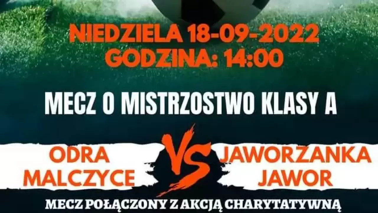 Mecz rozpocznie się w niedzielę 18 września o godzinie 14.00. Odra Malczyce w 6. kolejce legnickiej A-klasy podejmie Jaworzankę II Jawor. W trakcie spotkania przy boisku będzie trwała akcja charytatywna i, jak zapewniają organizatorzy, atrakcji nie zabraknie. Dla dzieci przygotowano dmuchańce. Odbędzie się także pokaz capoiery czy warsztaty makijażu, a w trakcie będzie można zakupić domowe ciasto oraz inne przekąski. Uzbierane środki zostaną w całości przeznaczone na leczenie 14-letniego mieszkańca Kwietna Damiana Targosza.
