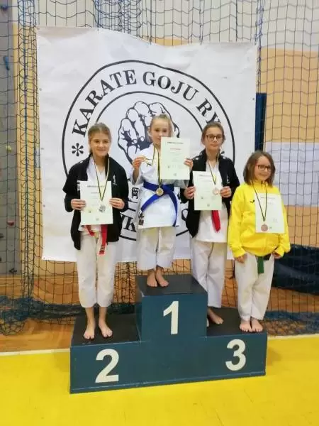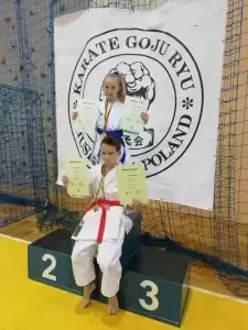Pierwsze miejsca w kata: Milena Żurek w 3 kategoriach wiekowych 9, 11, 13 lat. Kamil Brzeziński w 2 kategoriach wiekowych 11 i 13 lat.