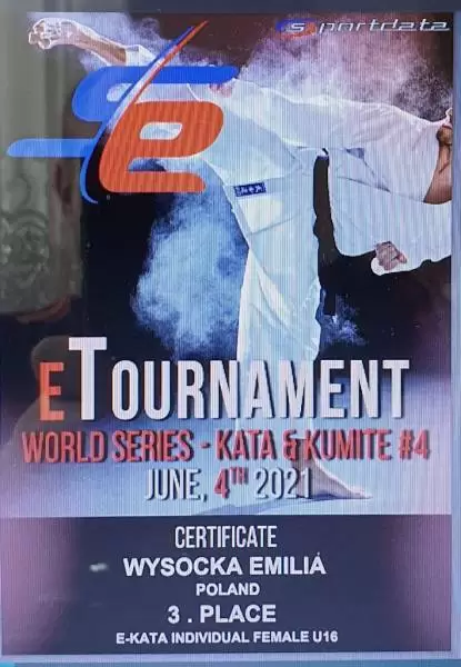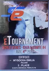 04.06.2021 r. Emilia Wysocka startowała w e-Tournament World Series Kata #4, gdzie wywalczyła 2 medale: srebrny w kata female U17 oraz brązowy w kata female U16. Warto tu wspomnieć, że turniej ten organizowany jest przez federację szwajcarską i posiada najwyższą rangę trudności - 10.