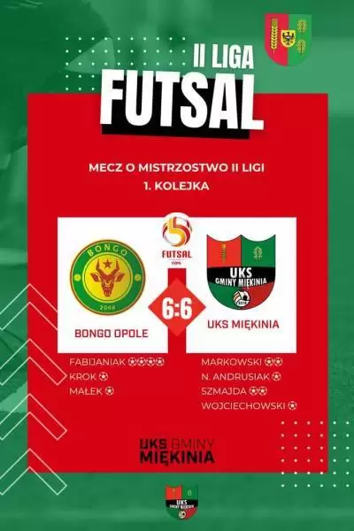 Bongo Opole – UKS Gminy Miękinia 6:6 (4:3)