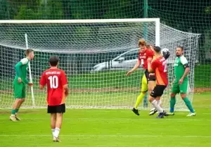 W drugiej połowie walka rozgorzała na całego ale niestety, podobnie jak na początku spotkania przewagę osiągnęli goście, którzy zdominowali boiskowe poczynania.