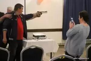 Podczas spotkania w Przedmościu sportowiec odpowiedział na pytania prowadzących i uczestników oraz zaprezentował broń, której używa w trakcie zawodów. Na projektorze wyświetlił zdjęcia wykonane w Tokio. Opowiedział o życiu w wiosce olimpijskiej oraz zasadach parastrzelectwa.