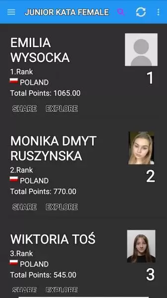 Czołową zawodniczką w rankingu PUK jest Milena Żurek, która jest nr 1 w kata ind. dziewcząt w kategorii wiekowej U-14.