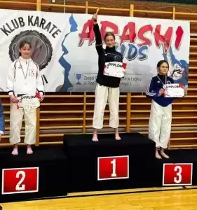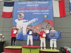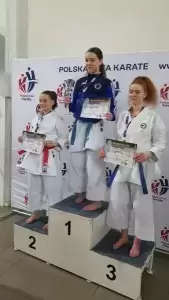 3 miejsce, Maria Kułakowska – kata ind. juniorek oraz 5 miejsce w kata ind. Kadetek