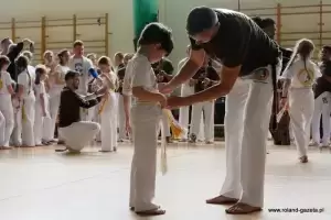 Następnie rozpoczęły się już planowane walki pokazowe w wykonaniu instruktorów i profesorów, a po nich treningi w grupach. Najbardziej wyczekiwaną część - nadanie stopni - pozostawiono na koniec. Obecni w Środzie Śląskiej adepci capoeiry kolejno przechodzili uroczysty proces i odbierali nowe sznury.