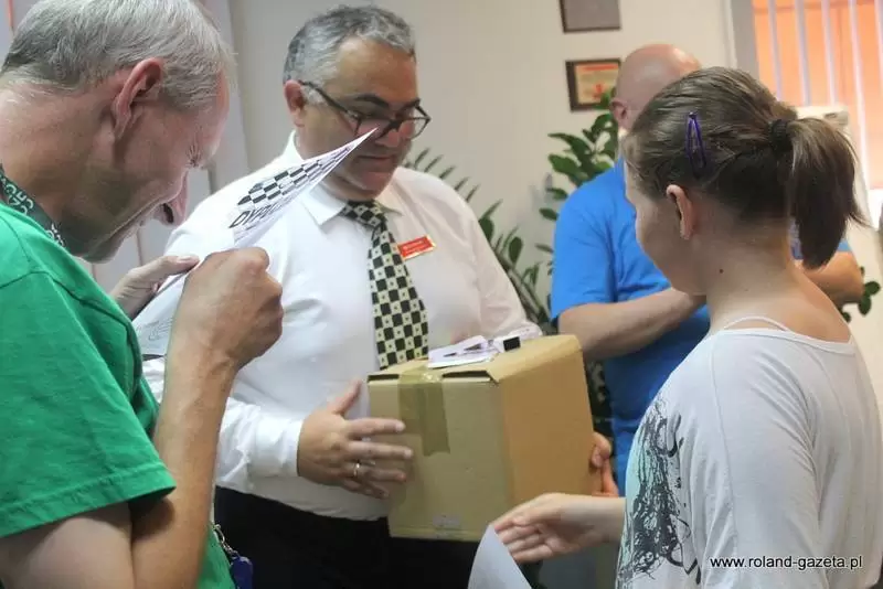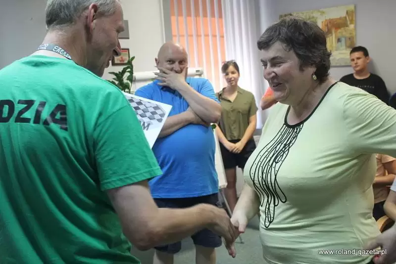 Tuż po zakończeniu rund i po zjedzeniu pizzy pani Redaktor z Roland Gazeta przeprowadziła wywiad ze zwycięzcą turnieju Wojciechem Woźniakiem, który zostanie opublikowany niebawem. Obecność Roland Gazety bardzo wszystkich ucieszyła, Redaktorzy zawsze są obecni na zawodach warcabowych.