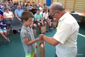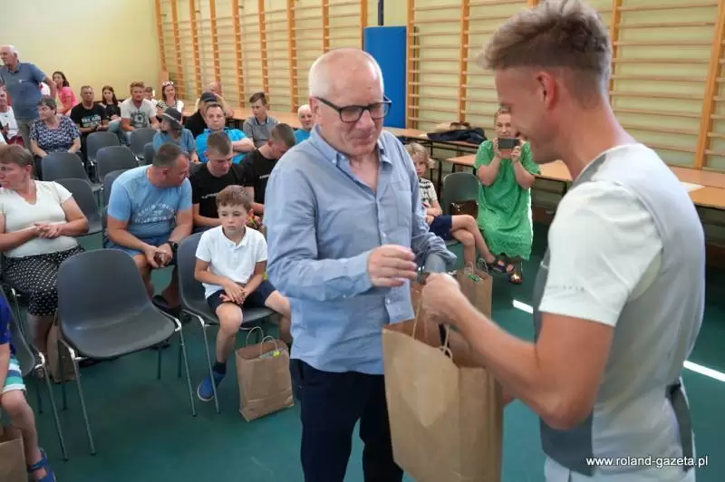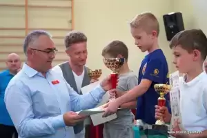 Statuetkę najmłodszego zawodnika odebrał siedmioletni Jakub Golonka (LKS Czarna Damka Lututów)