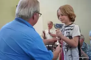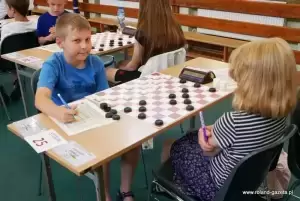 W grupie dziewięcio i dziesięciolatków do walki o podium i tytuł Księcia Turnieju przystąpiła piątka dzieci. Rywalizacja była zacięta, Patryk i Marika zgromadzili po 7 punktów i o wygranej znów musiały zadecydować małe punkty. Lepszy okazał się Patryk Delalicz de Laval (LSWKS Złote Piony Bielawa) uzyskując 29 solków wyprzedzając Marikę Gancarz (SGU Czarni Oleszyce) z 19 solkami. Trzecie miejsce wywalczyła siostra Mariki – Oliwia z dorobkiem 6 punktów dużych. Tyle samo punktów uzyskała czwarta Aurelia Schalley z Belgii reprezentująca w Polsce klub LKS Grom Złota Dama Poczesna, Aurelia podium przegrała zaledwie o 9 małych oczek. Jesteście super zawodnikami i przed Wami przyszłość. Przed Księciem Patrykiem chylimy czoła. Serdeczne gratulacje, życzymy dalszego rozwijania Waszych talentów i umiejętności gry w warcaby oraz dalszych sukcesów.