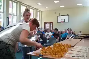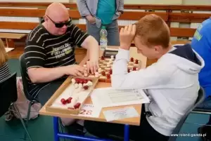 Aż 10 osób na 62 uczestników posiada jakąkolwiek niepełnosprawność, ruchowa, wzrok itd. Jak udowadniają wyniki końcowe niepełnosprawni potrafią świetnie grać i niczym nie odbiegają od osób zdrowych i sprawnych. W tej klasyfikacji najlepszy okazał się otrzymując Koronę Księcia Turnieju Józef Bajdak (KSNiS Hetman Lublin), na drugim miejscu zameldował się Edward Perdek (LKS Czarna Damka Lututów) a na trzecim Wojciech Woźniak (SKFSiTNiS Jutrzenka Częstochowa). Czyżby najbardziej wyrównana grupa? Proszę spojrzeć na tabelę – wszyscy podiumowicze uzyskali po osiem punktów! Ponownie decydujące o miejscach były małe punkty wartościowania (42-40-35). Osoby niepełnosprawne posiadają ogromny potencjał i nadal go rozwijają. Serdecznie gratultjemy i wierzymy że pokażą Mistrzom jak się gra.