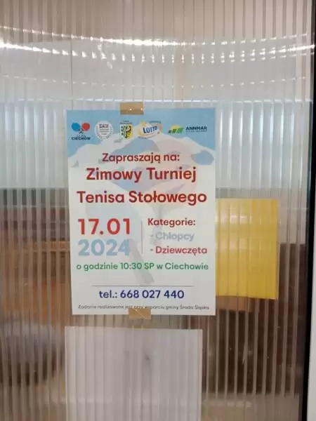 W środę 17 stycznia młodzi sportowcy zmierzyli się w turnieju tenisa stołowego. Wydarzenie zostało zorganizowane głównie przy wsparciu fundacji LOTTO, a partnerami w całym przedsięwzięciu byli: ULKS Ciechów, SP Ciechów, firma ANN-MAR z Wrocławia oraz Gmina Środa Śląska.