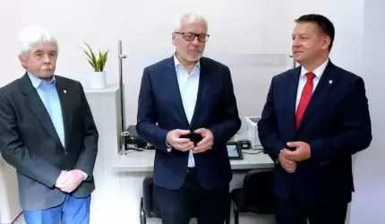 Wojewoda Jarosław Obremski podczas otwarcia Terenowego Punktu Paszportowego w Środzie Śląskiej