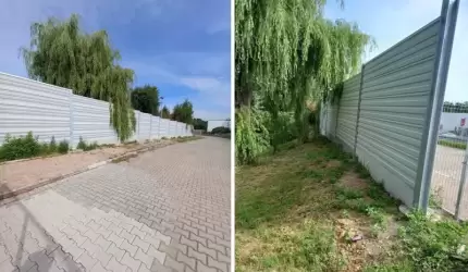 Ekrany akustyczne między osiedlem mieszkaniowym a dawnym zakładem Coca-Coli