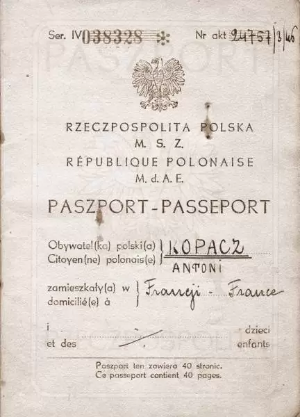 Antoni Franciszek Kopacz z żoną Stefanie (Fanny) - Paryż, 20.04.1946 r.