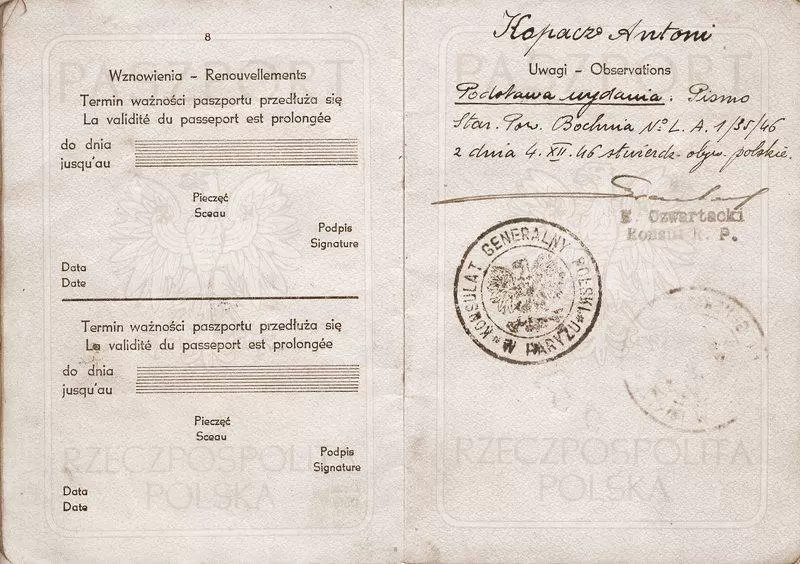 Gdy się już zadomowiłem, ściągnąłem z Bochni młodszych braci – Jana i Emila. W 1946 roku, jak grom z jasnego nieba, gruchnęła wiadomość, że do Legnicy przyjechał transport z repatriantami z Francji i Belgii. Wzywają mnie do telefonu. Dzwoni mój starszy brat Antoni i mówi, że przyjechał z Paryża z żoną Stefanie i czy mogę mu pomóc urządzić się w Polsce. W Legnicy na stacji poznaję od razu Antoniego, mimo że nie widzieliśmy się od 1939 roku. Jest w amerykańskim mundurze – służył w US Army jako warrant officer. Jan żeni się z Krystyną Duchnowicz i zamieszkuje z teściami na ulicy Górnej w Środzie Śląskiej. Krystyna pracuje w Banku Spółdzielczym, Jan w Gminnej Spółdzielni – są urzędnikami. Emil jest pracownikiem biurowym w Powszechnej Spółdzielni Spożywców (PSS), jego żona Irena pracuje w sklepie pasmanteryjnym, a mieszkają w Rynku pod nr 10 – tak samo jak Władysław i Emilia. Antoni obejmuje kierownicze stanowisko w banku mieszczącym się na parterze starostwa. Stefanie, na którą mówiliśmy "ciocia Fanny", pracuje w PSS w biurze, mieszkają kamienicę dalej, pod nr 8. Władysław Kopacz jest pracownikiem starostwa, potem PZGS – Powiatowego Związku Gminnych Spółdzielni. Emilia Jarosz w 1948 r. wychodzi za mąż za Władysława i wychowują dzieci – Jolantę i Wojciecha. Gdy dzieci są odchowane, zaczyna pracę jako ekspedientka w sklepie z pieczywem. Ze związku Krystyny i Jana Kopaczów rodzą się dzieci: Teresa i Andrzej. Natomiast Irena i Emil mają trzy córki: Alicję, Małgorzatę i Elżbietę. Antoni i Fanny nie mają dzieci."