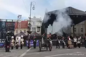 Dni Środy Śl. 2013. Od lewej: Daniel Padewski, członek grupy rekonstrukcyjnej i Woytek Kopacz