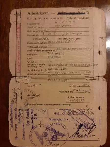 W Bochni ciągłe aresztowania - przełom 1939 i 1940 roku. Za namową znajomego oficera Wojska Polskiego zgłaszam się na ochotnika na roboty do Niemiec jako - „Freiwillig ”. Major mówi do mnie: Panie Władku, musimy mieć wiadomości z Niemiec, zrozum pan – ktoś musi być pierwszy, kogoś musimy tam wysłać. Pan jako podoficer WP będzie zbierał informacje o wrogu. To jest rozkaz.