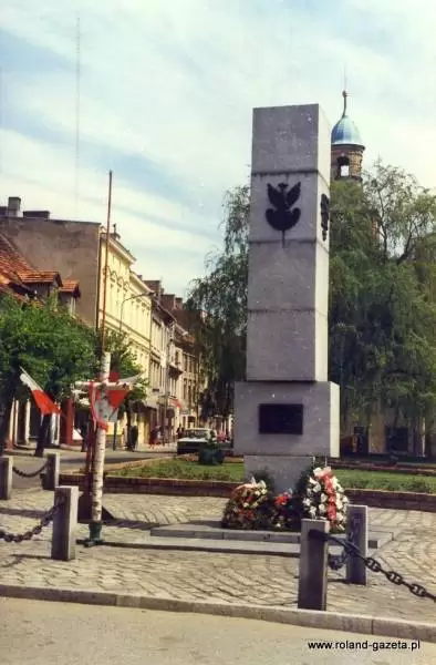 Do powstania pomnika w istotny sposób przyczynił się Władysław Kopacz, oficer Wojska Polskiego w stanie spoczynku. Jego ideę wsparł pan Tadeusz Kurpaski, nauczyciel historii w Liceum Ogólnokształcącym, który zaproponował jako miejsce lokalizacji Rynek Dolny – najbardziej godny dla takiego obelisku.