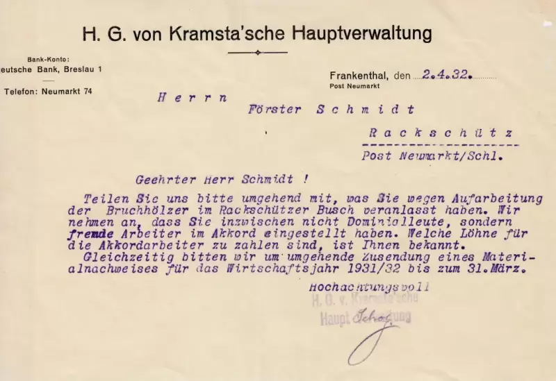 Pielęgnacja lasu von Kramsty (ciekawostka historyczna)