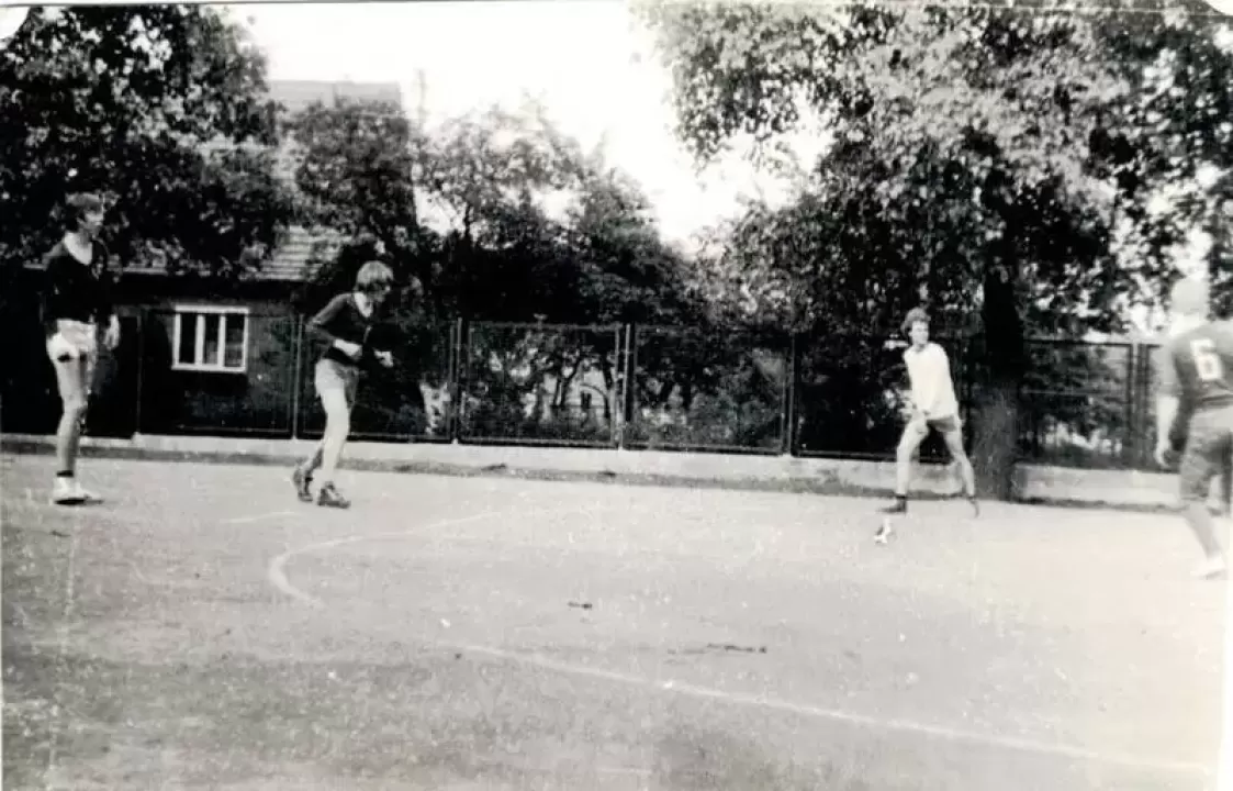 Na pierwszym planie Czesław Dziatkiewicz, nieco późniejszy zawodnik piłki ręcznej w Środzie Śląskiej, a obecnie trener drużyny dziecięcej w Polkowicach, gdzie mieszka i pracuje