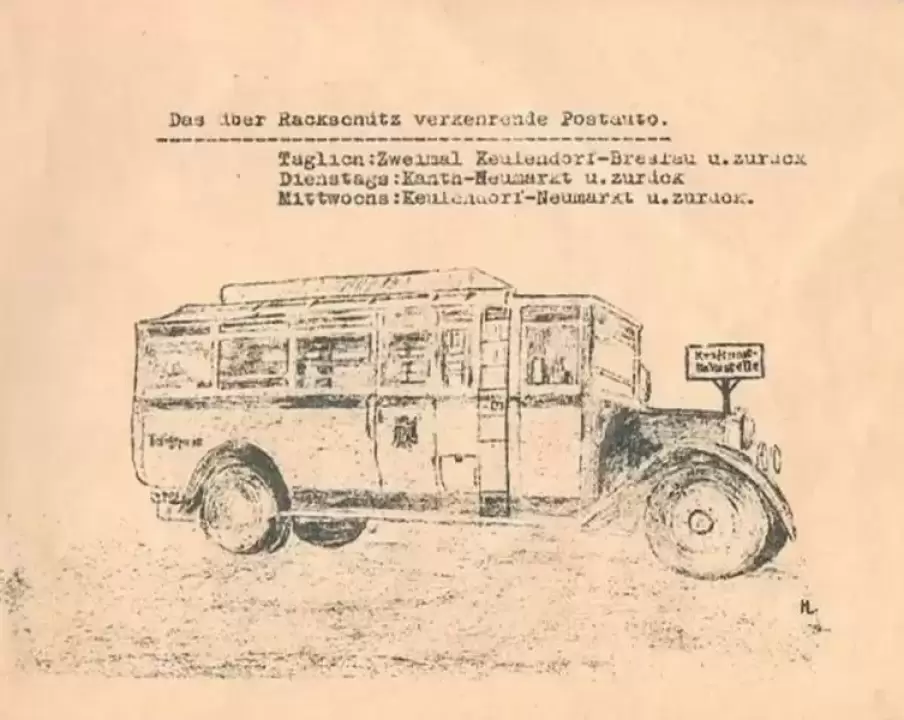 W latach '30 XX w. nasze okoliczne miejscowości w pocztę zaopatrywał omnibus. Jeździł on trzema trasami Kulin (Keulendorf) - Wrocław (Breslau), Kulin - Środa Śląska (Neumarkt) oraz Środa Śląska - Kąty Wrocławskie (Kanth).
