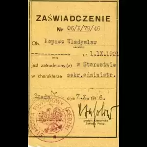 Władysław Kopacz, autor wspomnień, urodził się 1 września 1921 r. w Dołuszycach, wsi pod Bochnią. Żołnierz Armii Poznań, obrońca Lwowa w 1939 r. Po pięcioletnim pobycie w niemieckim obozie pracy, w czerwcu 1945 r. po raz pierwszy zjawia się w Środzie Śląskiej. Od lipca zaczyna pracować w Starostwie Powiatowym jako urzędnik. Na polecenie starosty, Władysława Gałuszki, w sierpniu 1945 r. opracował pierwszą polską mapę powiatu średzkiego!