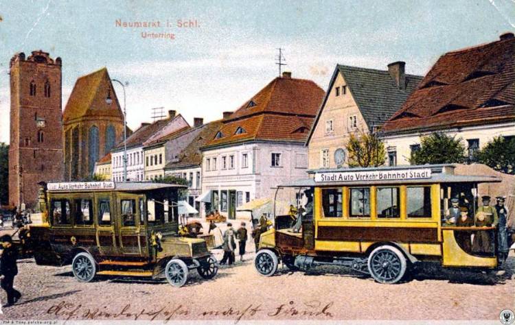 Początkowo kursowały pomiędzy stacją, a centrum miasta dorożki konne, a w 1909 r. wprowadzono na trasę ,,żółte busiki miejskie''.