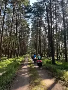 Podczas kolejnych dni jechaliśmy wzdłuż wybrzeża Morza Bałtyckiego trasą rowerową R10. Zbaczaliśmy z niej, aby odwiedzać latarnie morskie (bo nie wszystkie były w bezpośredniej bliskości drogi). Łącznie udało nam się dotrzeć do 13 z 15 latarni. Jeden z piękniejszych odcinków naszej trasy prowadził przez Woliński Park Narodowy. Ale także wioski i miasteczka mijane przez nas po drodze były urokliwe i pozwalały nam ucieszyć się pięknymi widokami i świeżym nadmorskim powietrzem. Poznawanie polskiego wybrzeża rozciągnęliśmy również na doświadczenia gastronomiczne. Świadomie omijaliśmy sieciowe restauracje, by zatrzymywać się na „domowe obiady” i posmakować tradycyjnych dań kuchni nadmorskiej. Wśród nich oczywiście nie zabrakło gofrów z bitą śmietaną i innymi dodatkami:)