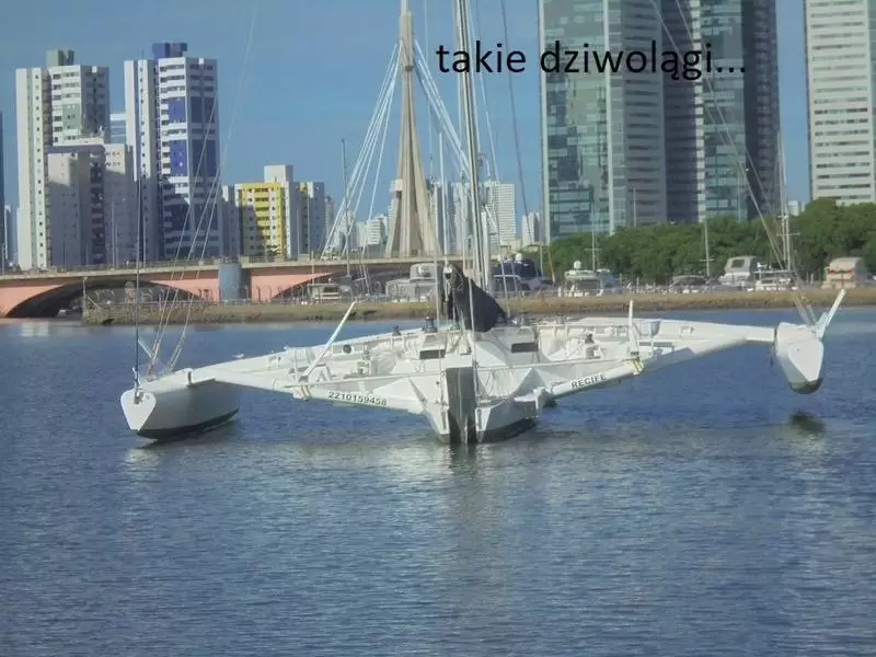 Po tygodniu ruszam dalej na południe. Do Recife. To niebywale trudny odcinek. W deszczu, mgle i silnym wietrze. Autopilot nie trzyma. Brak ładowania baterii, bo nie ma słońca. Muszę podpierać się silnikiem. Ale śruba za często jest bez wody, gdy spadam z fali. Ostatnio też trzyma się burty rekin. Udaje, że go nie interesuję, ale czeka aż wypadnę. Znów muszę zakładać szelki w nocy. Kiedy wreszcie płynąc na silniku wchodzę do rzeki w Recife, widzę już spokój przy kei i mały drink z cachiasy. Niestety. Muszę stanąć na kotwicy i nie wolno mi przybijać nawet pontonem do kei. Podobno obcokrajowcy roznoszą bakterie i wirusy.
