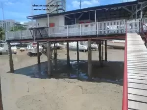 Po poszukiwaniach mariny – była na mapie – wracamy do Sao Luis. Tam jest coś jakby port jachtowy. Tyle, że na osuchach. To znaczy, że gdy stoimy w wodzie i mamy pod sobą 6 m to za 8 godz. jest pod łódką tylko błoto. I kraby. I węże. I strach, że się obalimy na burtę. Pierwsze trzy doby staliśmy na zielonej boi pół mili od mariny, ale kiedy dowiedziałem się, ze kilka lat temu zamordowano w tym miejscu Holendra i jego jacht stoi pusty do tej pory w marinie, to wpłynęliśmy na osuchy. I tak codziennie – błoto i woda. Jak poniżej na fotce.