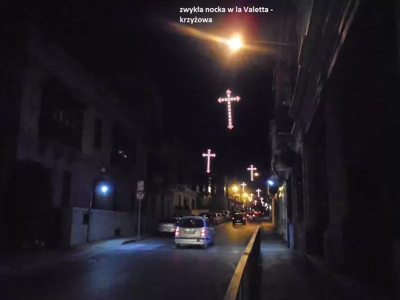 Procedura rejestracji trochę trwa, pływamy do pomostu z asystentem mariny w te i z powrotem. Płacimy 102 euro za 2 doby i kaucję za klucz. Wifi brak, bo się zje... Ruszamy w miasto na zwiedzanie. Język, którym posługują się miejscowi to maltański. Trochę przypomina arabski. Pisze się go łacińskimi bukwami, więc jest to ewenement językowy. Na każdej ulicy wiszą podświetlone krzyże – małe i duże. W różnych nieoczekiwanych miejscach - na balkonach, liniach elektrycznych, drzewach. Święte – katolickie – figurki na każdym rogu, skwerze. Trzeba pamiętać, że ta najdalej na południe położona stolica europejska jest chyba bardziej święta niż Watykan. Jednocześnie mieszkańcy posługują się w zasadzie językiem arabskim. Cuda! Cała wyspa jest podobno powierzchniowo mniejsza od Krakowa. Mieszka tu 440 000 tys. mieszkańców. Ale na ulicach słychać głosy w różnych językach. Również nierzadko w polskim. Ale chyba częściej rosyjskim i ukrainskim...