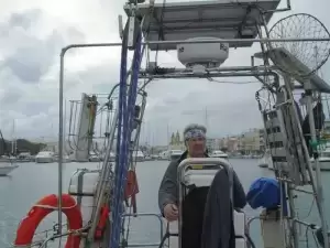 Na kilka mil przed wejściem do portu straciliśmy sterowność - odkręciła się śruba zabezpieczająca kolumnę w osłonie. Jacuś szybko zanurkował w achterze z kluczami i po 10 min problem został usunięty. Ale to nieprzyjemne uczucie, gdy tracisz sterowność łodzi, a wokół stalowe kolosy.