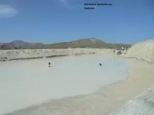 Nazajutrz, w południe, ruszamy na następną wyspę wulkaniczną – Vulcano. Jest niedaleko i kierujemy się na zatokę Ponente. Czarny wulkaniczny piasek na plaży nadaje abstrakcyjny wygląd wybrzeża z palmami. Wiatr niesie zapach siarkowodoru z Fanghi di Vulcano. Kotwica w dół i pontonem ruszamy zwiedzać wyspę. Zatrzymujemy się na polu geotermalnym Funghi z jeziorkiem błotnym . Niewielkie oczko wodne wypełnione wodą z błotem i bąbelkami gazu z dna. Dno jest gorące i łatwo oparzyć stopy. Ponoć b. zdrowe na stawy i te sprawy. Można zejść kilka metrów w dół do morza, gdzie znów gorące bąble uprzyjemniają chodzenie po, zimnym jeszcze o tej porze roku, morzu. Krótki prysznic pod zimną wodą nie jest w stanie zmyć zapachu zepsutego jaja. Wchodzi on w skórę i ubranie. Całą mesę na jachcie czuć zgniłymi jajami...