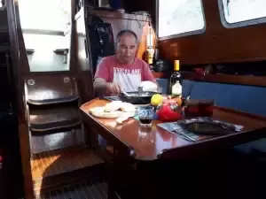 Od wczesnego świtu pada deszcz, ale wiatr dopisuje. Po byle jakim wietrze w nocy teraz płyniemy półwiatrem z prędkością 8-9 knotów. Kurs na wyspę Stromboli.